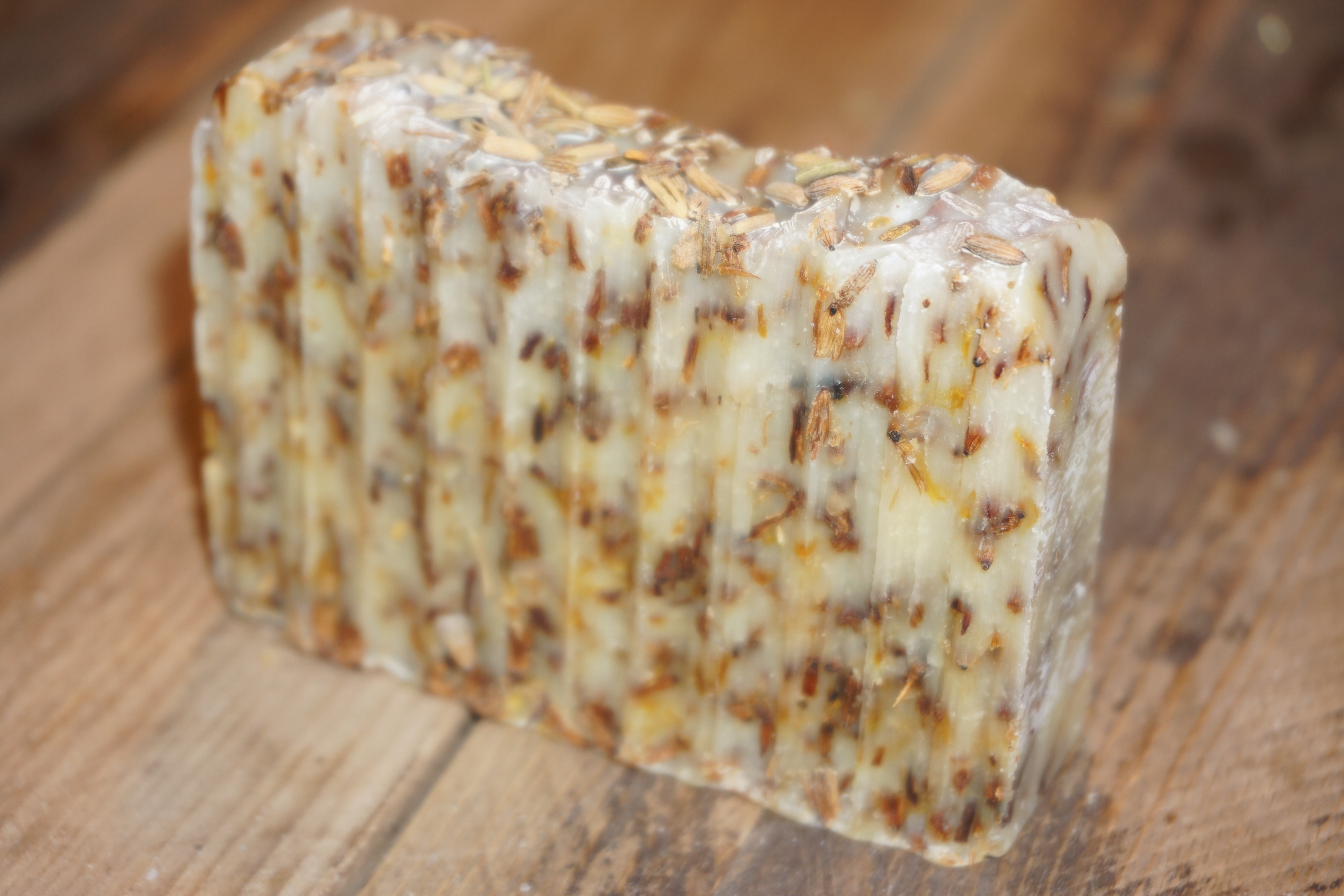 This is simply a beautiful calming, healing soap, made from Coconut oil & Olive oil & 100% pure Lavender essential oil, it has botanicals, dried Lavender & Calendula petals mixed into the soap.